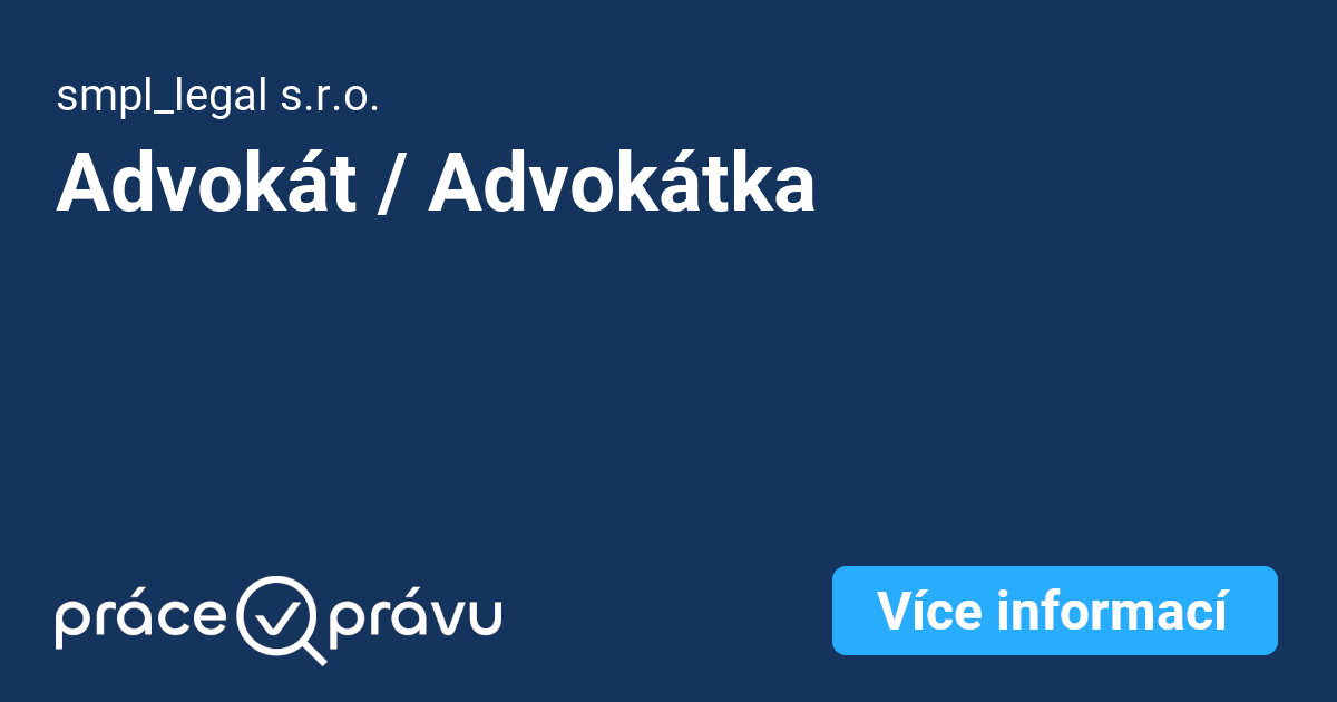 Rádi přijmeme do týmu advokáta/ku do naší advokátní kanceláře v Praze nebo Brně. Jsme skupina právníků, daňařů a účetních. Najdeš nás pod značkou smpl_ a na webu www.smpl.cz. Zaměřujeme se na online business se vším, co k němu patří. Poskytujeme high-level servis pro 21. století. Mezi naše klienty patří řada startupů a IT firem, které znáš z Forbesu nebo CzechCrunche.