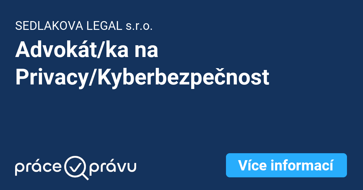 Kategorie inzerátu: advokátBrnostředně velká společnost (11-40 lidí)IT/IP právoAIochrana osobních údajůGDPRkybernetická bezpečnostanglický jazyk