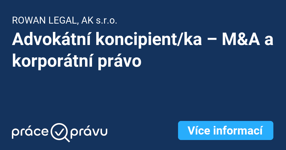 Chceš být u transakcí, které hýbou trhem, a rozvíjet se v oblasti, kde se potkávají právo, byznys a strategie? V ROWAN LEGAL budeš součástí týmu, který stojí za významnými akvizicemi, restrukturalizacemi a korporátními projekty pro české i mezinárodní klienty.