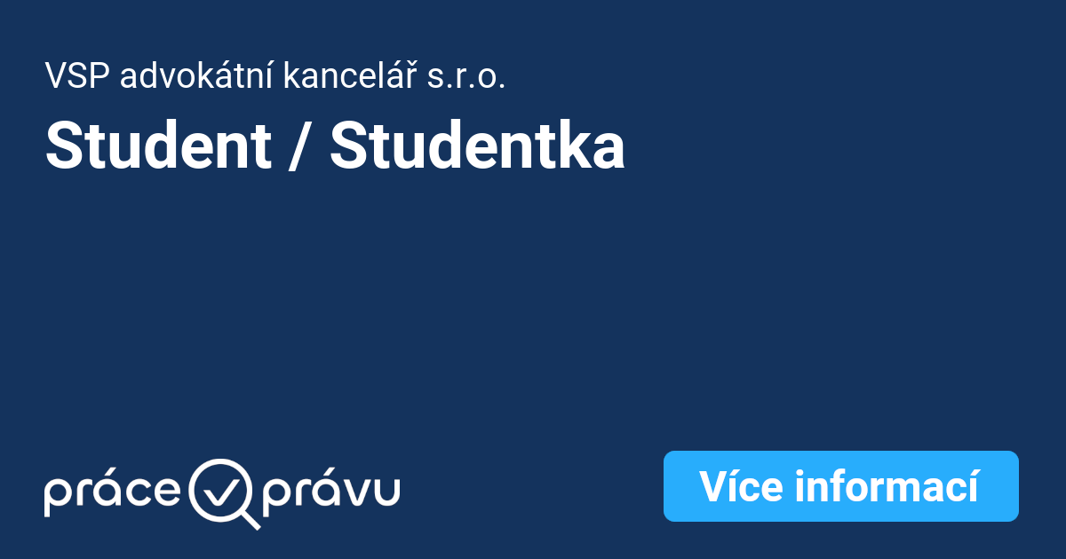 VSP advokátní kancelář, s.r.o., se sídlem na Praze 2 na Náměstí Míru, hledá do svého týmu studenta nebo studentku 3.- 4. ročníku právnické fakulty na pozici právní praktikant/ka.